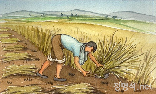 무더운 여름날 보리 베기, 보리 타작, 풀하기, 잡초가 나서 산처럼 된 밭매기…